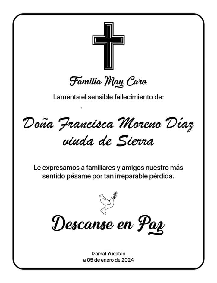 The GRG announces the age validation of Francisca Moreno Diaz. Francisca, known as Dona Panchita, was born December 3rd 1913 in Sitilpech, Izamal, Yucatan, Mexico, to parents Francisco Moreno and Elodea Diaz. Her birth was registered on December 5th 1913 and then she was baptized on January 14th 1914. On January 6th 1937, in Izamal, Francisca married Andres Sierra Patron (born around 1904 – 1907). They went on to have at least three children. Sadly, Francisca was widowed in April 1978, after which she did not remarry. She passed away on January 5th 2024, aged 110 years, 33 days, in Izamal.