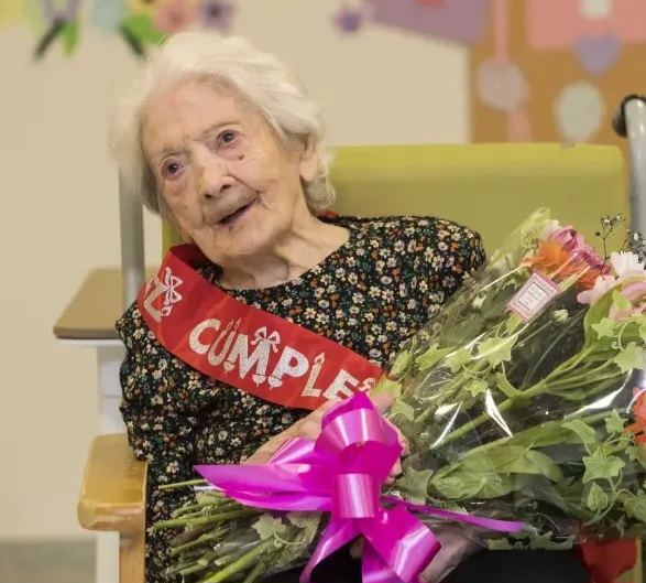Piedad Loriente Pérez on her 113th birthday in 2024.